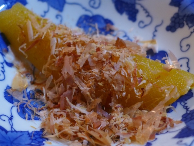食べやすい大きさに切って盛り付け、かつお節や木の芽を飾りましょう。