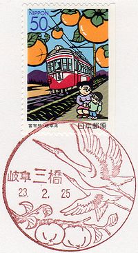 三橋郵便局(岐阜県本巣市)の図案は、めでたい鶴の絵です。