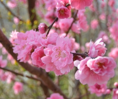 梅と桃は花芽の数が異なることから、梅は花が散らばって咲き、桃は花が固まって咲くように見えます。